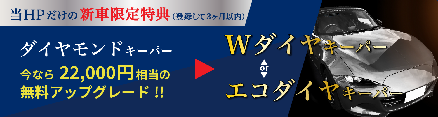 新車(登録して3ヶ月以内)にダイヤモンドキーパーを施工される方には、同料金にてダブルダイヤキーパーにランクアップさせて頂きます。